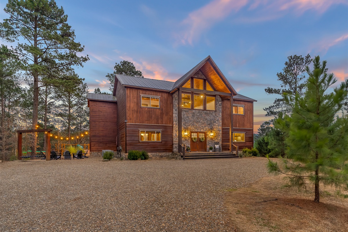 Watch the sun rise over the ridge as you sip your early morning coffee or indulge in a lazy day, lounging on the upper deck. As the sun goes down, take a relaxing dip in the sunken seven-person hot tub, or hang out under the covered porch by the outdoor fireplace watching the big game. Cook up a feast on the grill and enjoy an outdoor meal at our two outdoor dining tables while listening to your favorite songs over the patio's bluetooth speakers. Then, huddle around one of our two firepits with your family and friends while making s’mores under the stars.